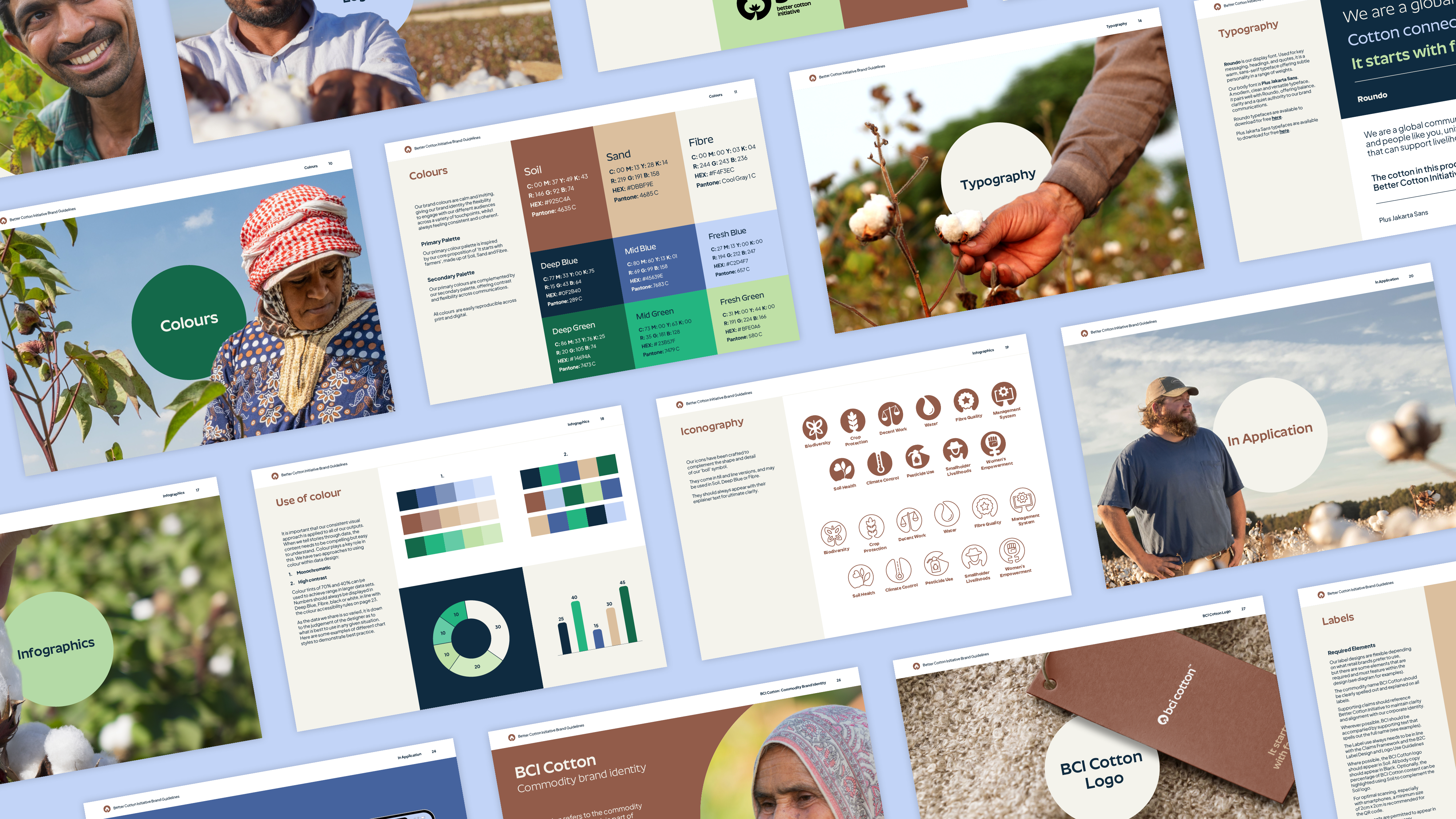 The logo typeface is also used as the display font, lending cohesion and impact to their key messaging. Paired with a clear, flexible secondary font, all the elements work in harmony across labels and communications to raise BCI Cotton up to the globally recognised certification body that they are.