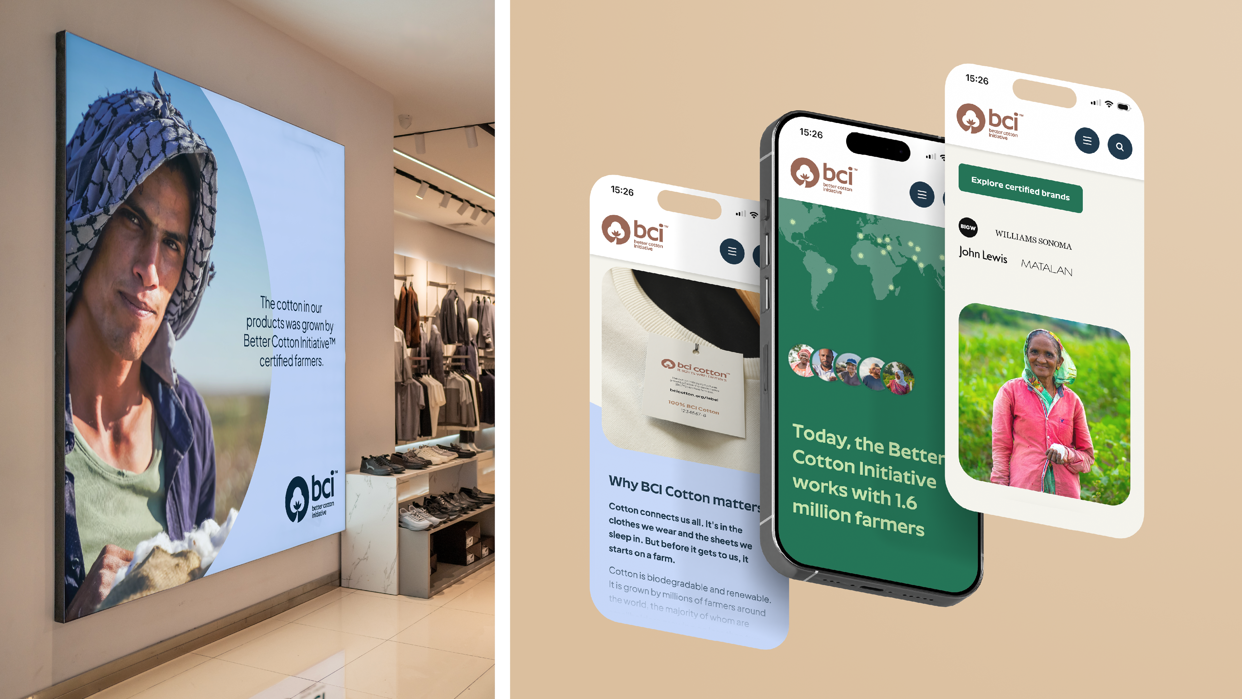 Working alongside our digital agency partner, we brought the new identity and narrative to life online — giving the website a fresher, more confident presence with the proposition pushed right to the forefront. And because the new label deserved a standout space of its own, we created the BCI Cotton Label page as its dedicated home, rolling the new visual identity across this page, the homepage and other key landing moments to maximise impact.